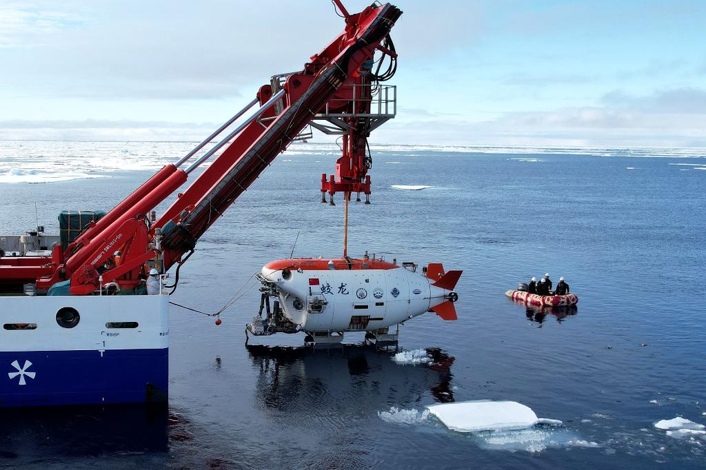 搭載着“奮鬥者”號載人深潛科考隊的“探索三號”於今年7月22日從三亞出發,會同“蛟龍”號載人深潛團隊赴北冰洋海域執行深潛任務。其間,科考隊在北冰洋作業56天,進行了一系列科學考察和試驗。在海冰覆蓋率大於80%的北冰洋中央海盆,科考隊進行了國際上首次加克洋中脊的載人深潛科考,最大下潛深度達5277米。