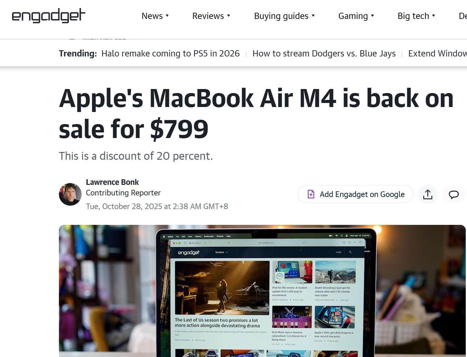 蘋果 MacBook Air M4 重新開售:相比原價直降20%