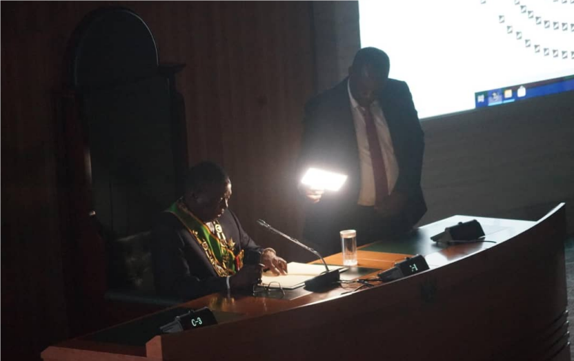 講話期間突然停電,津巴布韋總統藉手電筒照明完成剩餘發言