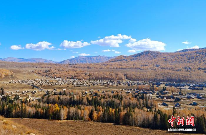 眼下新疆秋意正濃,位於阿勒泰地區布爾津縣的禾木村層林盡染,遊人如織。