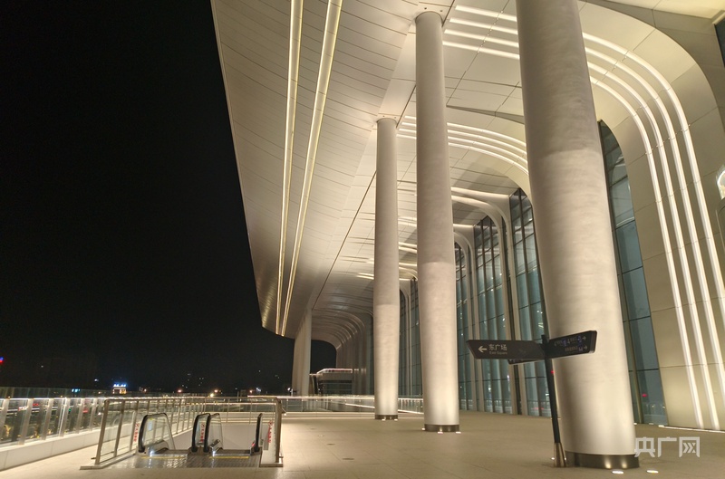 東廣場上,汕頭站全貌盡收眼底。“海絲騰飛、潮立汕頭”的設計立意貫穿始終,22根最高約23米的“海浪柱”搭配“海浪”造型檐口吊頂,呈現“海潮奔湧”的壯闊景象;正面柱廊設計理念源自嶺南騎樓,盡顯傳統建築文化與開放包容的城市精神。