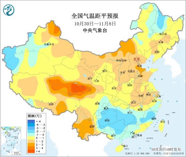 *11月7日前後,將有一股較強冷空氣自西向東影響我國大部地區,*長江以北大部地區氣温下降4~8℃,局地降温10℃以上;並伴有大風天氣。