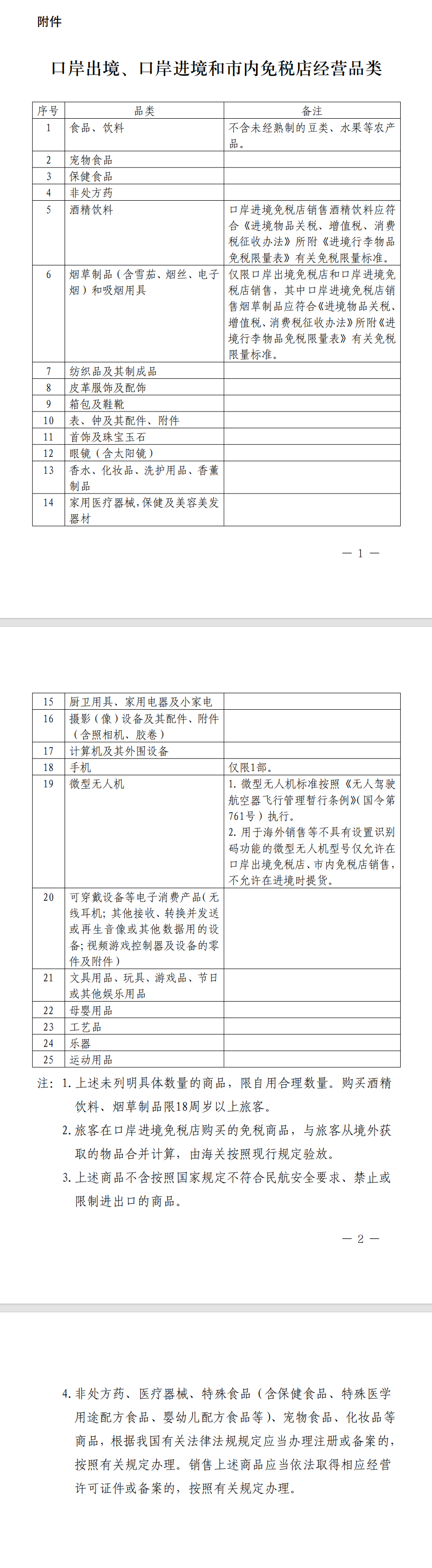附件:口岸出境、口岸進境和市內免税店經營品類