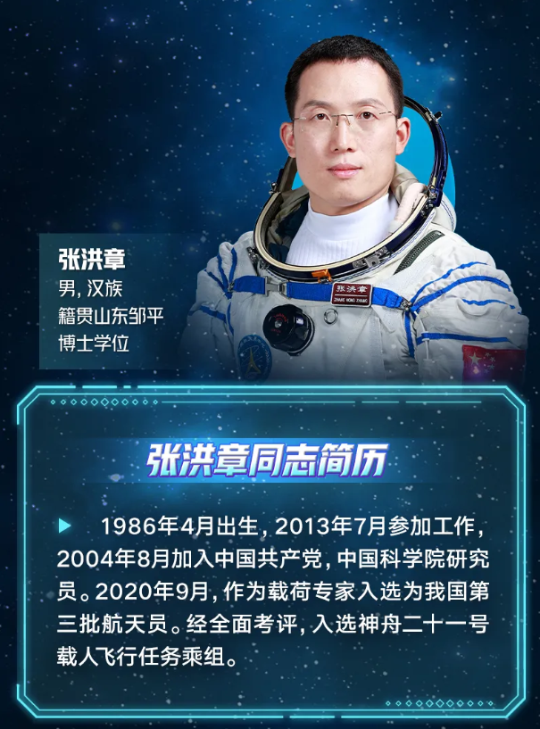 其中,航天員張洪章