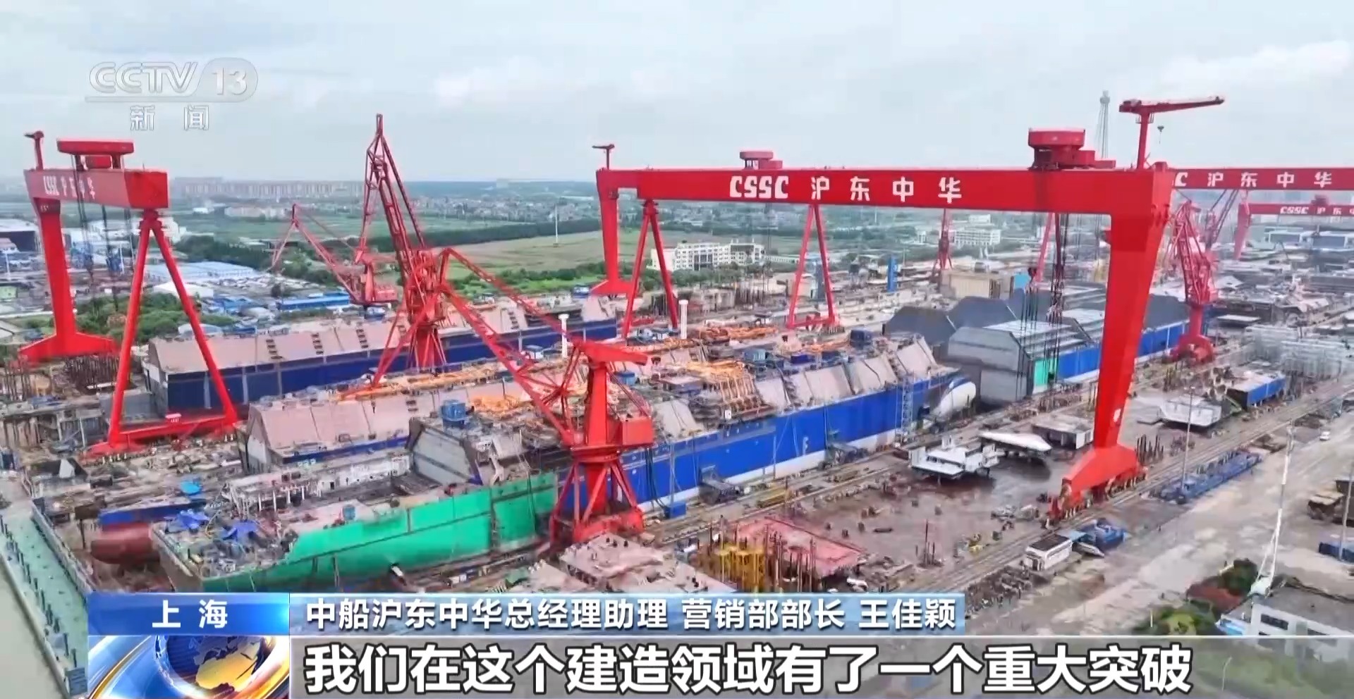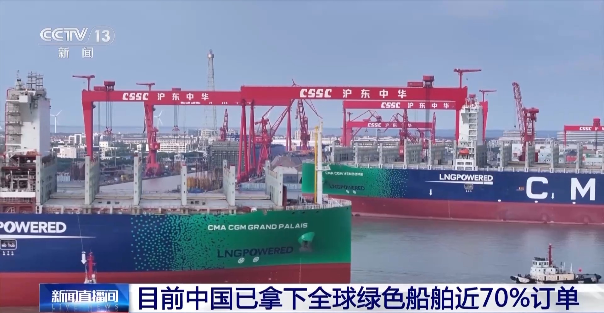在中船滬東中華造船廠,記者看到,今年這家船企接到的綠色船舶訂單佔比已經超過80%,是近5年最高水平。船型覆蓋集裝箱船、LNG運輸船等主力船型,燃料也從液化天然氣拓展到了甲醇、液氫等,高端化、綠色化已經成為中國造船的新名片。