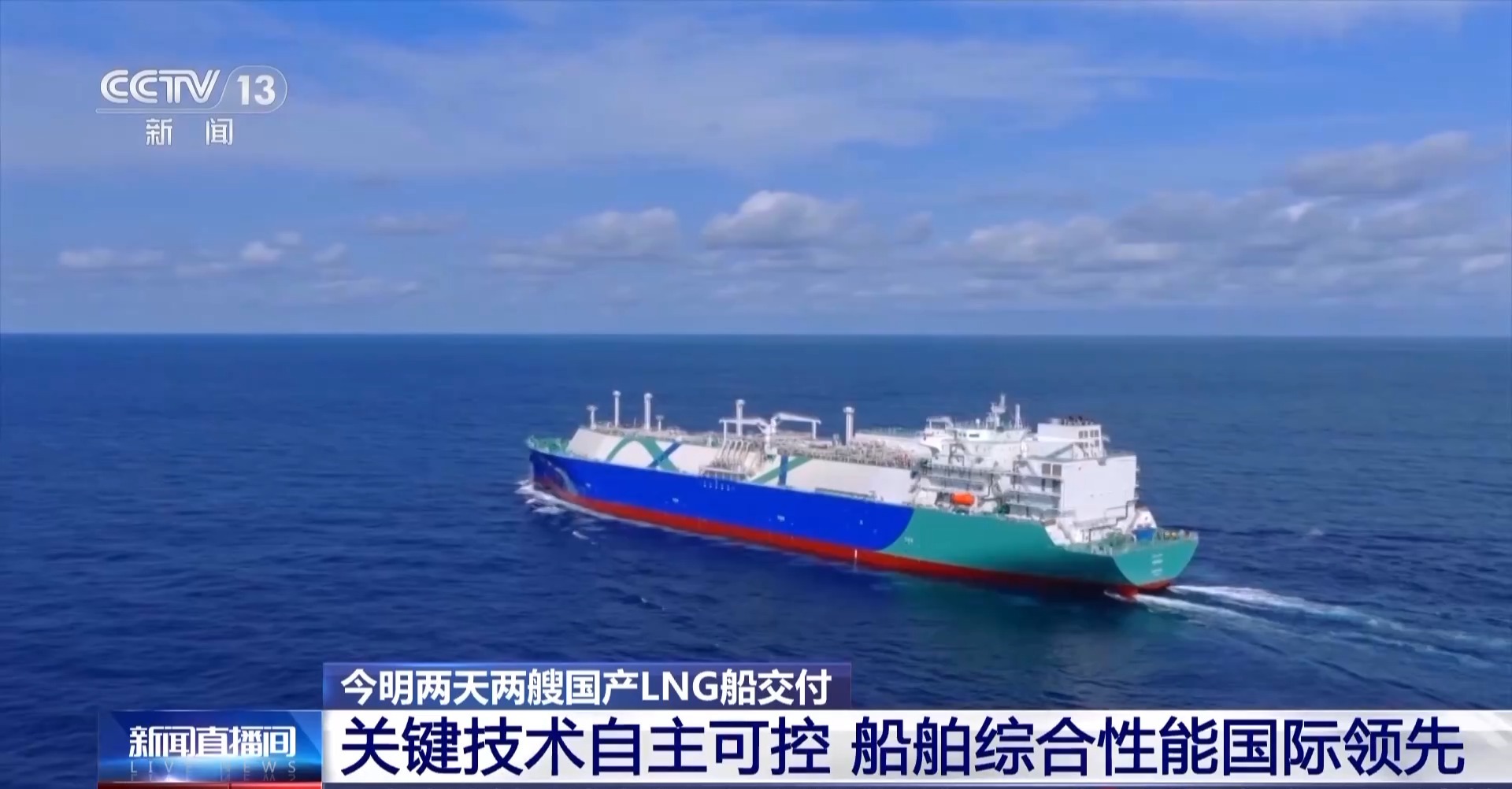 記者從中船集團獲悉,我國自主研製的17.4萬立方米LNG液化天然氣大型運輸船,今天(30日)在上海交付,而明天還將有同一型號另一艘船交付用户。兩天接連交付的這兩艘船,是我國自主研製的第五代LNG大型運輸船,不僅實現了關鍵技術自主可控,總體技術也達到了國際領先水平。