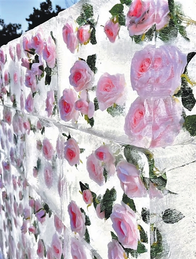 瀋陽市南湖公園設立的冰封玫瑰牆。
