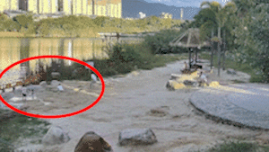 ▲黃建平與幾名羣眾合力將落水男子抬往路邊