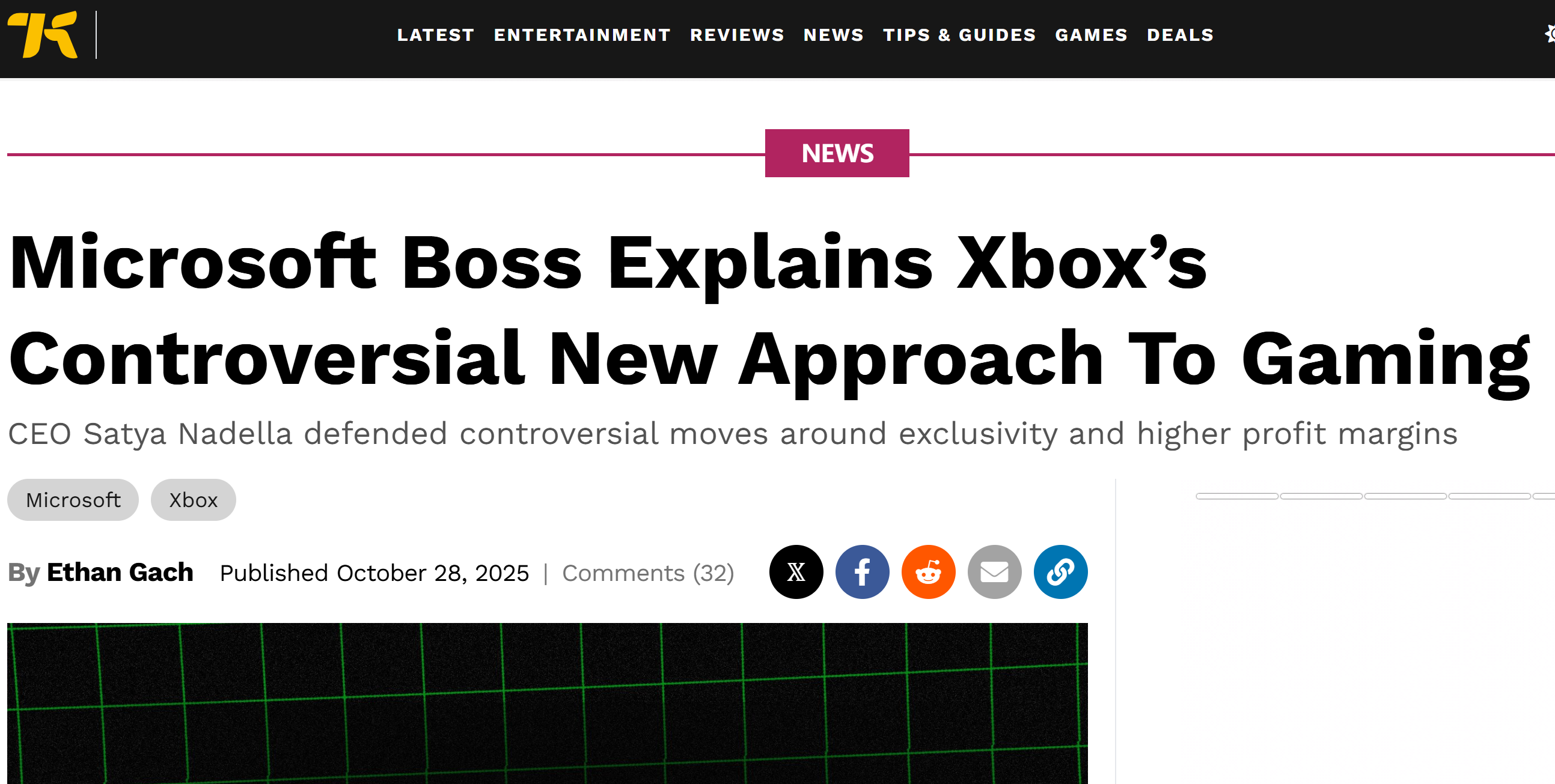 【環球網科技綜合報道】10月30日消息,據Kotaku報道,微軟首席執行官薩蒂亞・納德拉近日在接受採訪時,圍繞公司遊戲業務最新戰略及未來發展方向發表觀點,透露在完成對動視暴雪的收購後,微軟已躋身全球營收最高的遊戲發行商行列,並明確了推動遊戲業務“無處不在”的發展目標。