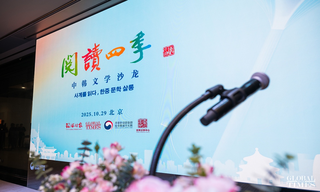 由環球時報英文版、駐華韓國文化院、北京語言大學世界漢學中心聯合舉辦的“閲讀四季”中韓文學沙龍,10月29日在北京韓國文化院舉辦。活動立足中韓地緣相近、人緣相親、文緣相通的傳統,以文學對話搭建交流新平台,旨在推進中韓兩國文明交流互鑑。據瞭解,環球時報英文版的系列閲讀活動始於2023年,已逐漸成長為一個有影響力的文化品牌。本次“閲讀四季”活動是今年的第三站。