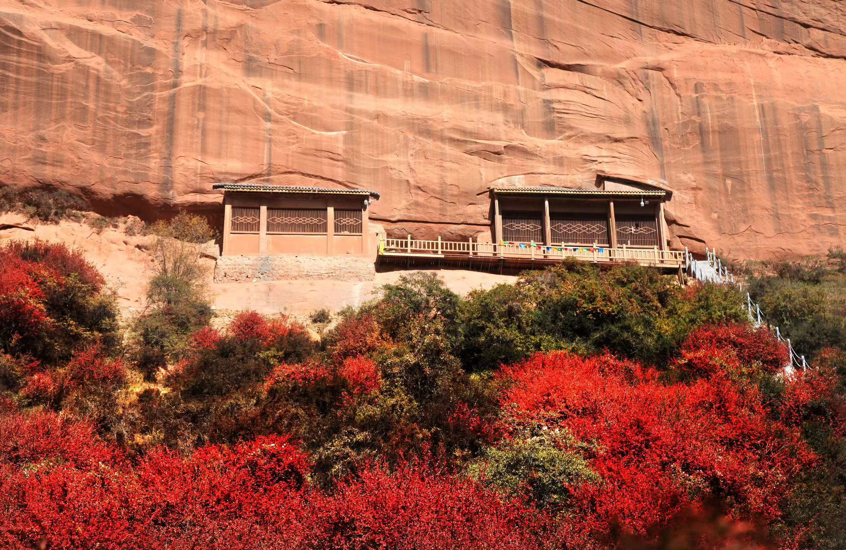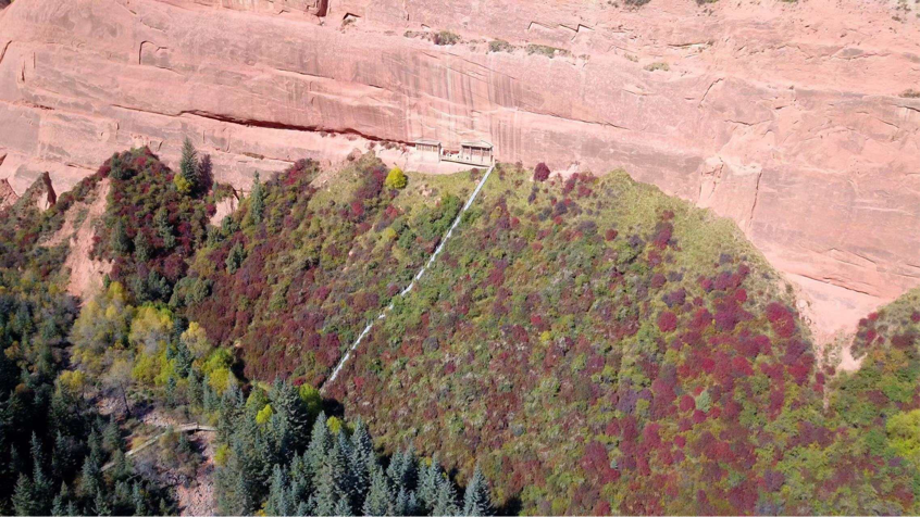 開鑿於紅砂崖壁上的金塔寺石窟,要上去得爬240級台階