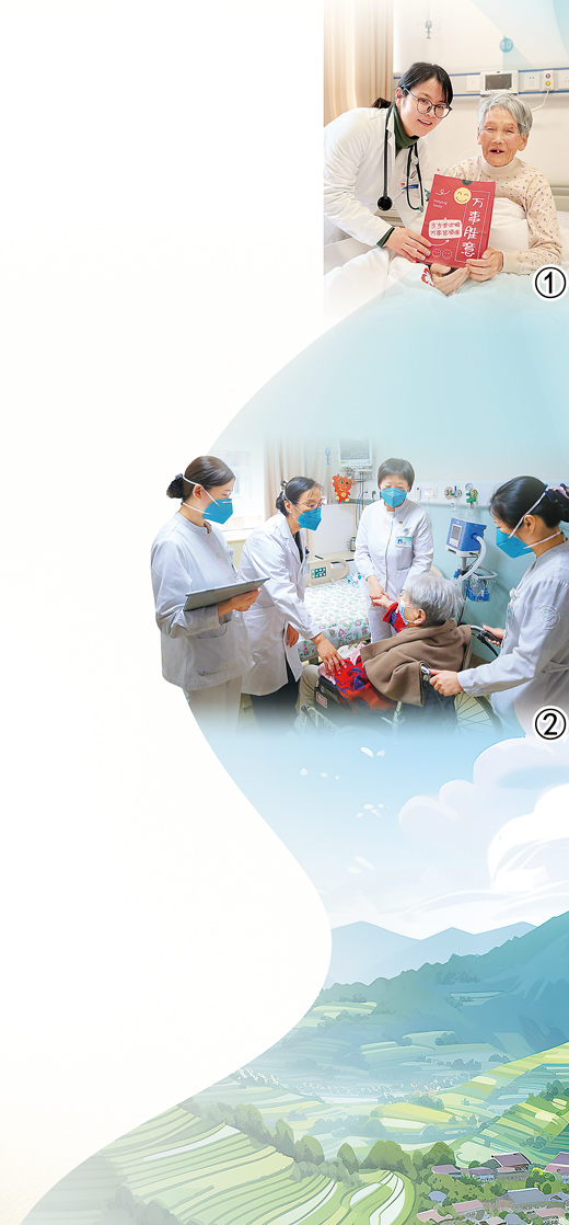 圖①:在安吉縣中醫醫院安寧療護病房,醫護人員正在陪伴患者。