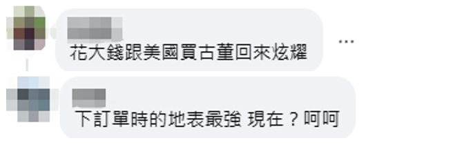 對於這一消息,有島內網民表示,“花大錢跟美國買古董回來炫耀”“下訂單時的地表最強,現在?”