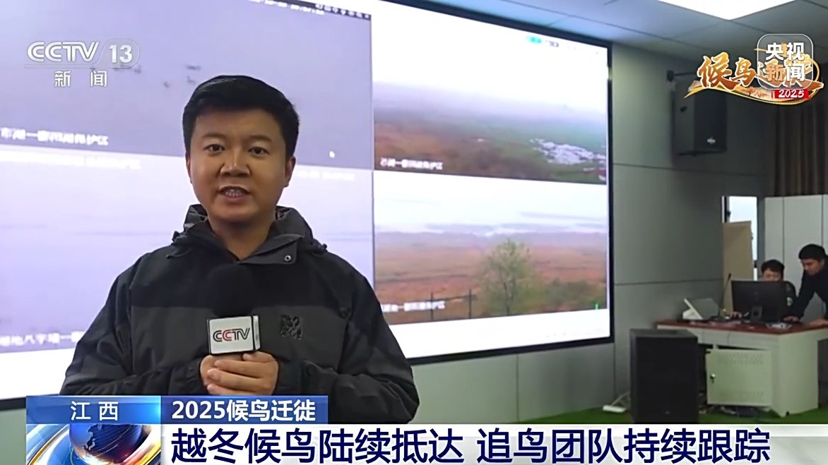 *總枱記者 劉昀彤:*我身後的這塊大屏幕顯示的是保護區的智慧管理平台,我們和保護區的工作人員通過調取30多個遠程的高清監控來查看候鳥的主要集中地區域。