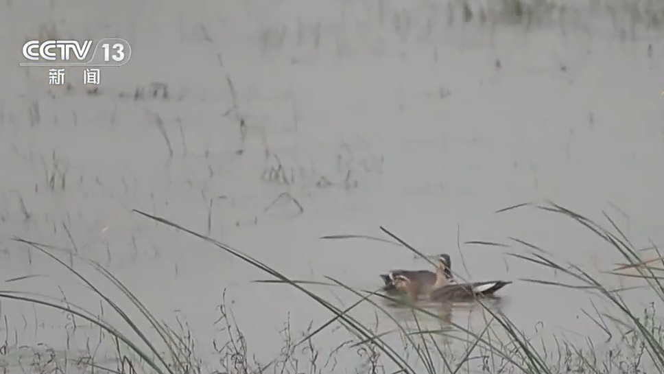 *江西鄱陽湖國家級自然保護區吳城保護站工作人員 袁子期:*這裏有差不多兩百來只豆雁。因為今天是陰雨天氣,我們前幾天在這邊進行監測的時候,天氣比較好,雁鴨類、白琵鷺、鴴鷸類都還是有一些的,種類和數量也比今天的豐富。