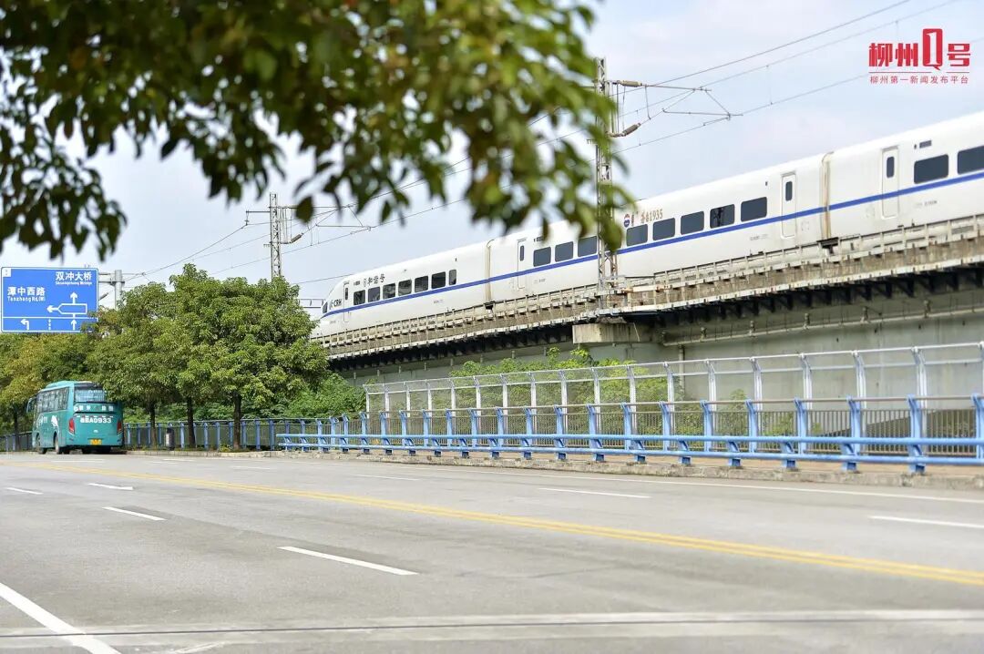 除和平村外,柳南區潭中西路附近也因“動車+城市”的視覺構圖成為另一處熱門打卡地。需注意的是,該路段車流密集,拍攝時務必注意來往車輛,確保人身安全。
