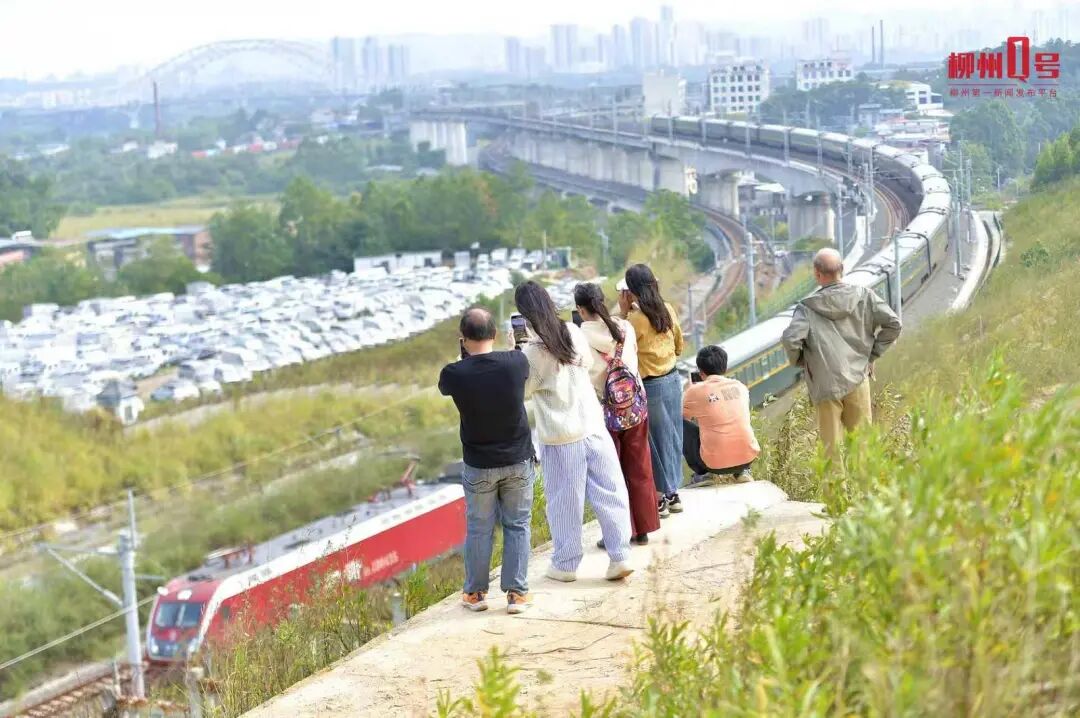 “走啊,看動車去!”近日,柳州一處可俯瞰動車穿行山野的“野生觀景台”在社交平台走紅。鏡頭中,列車從青翠的峯巒間飛馳而過,與城市天際線動靜交融,吸引不少市民遊客專程前來打卡。