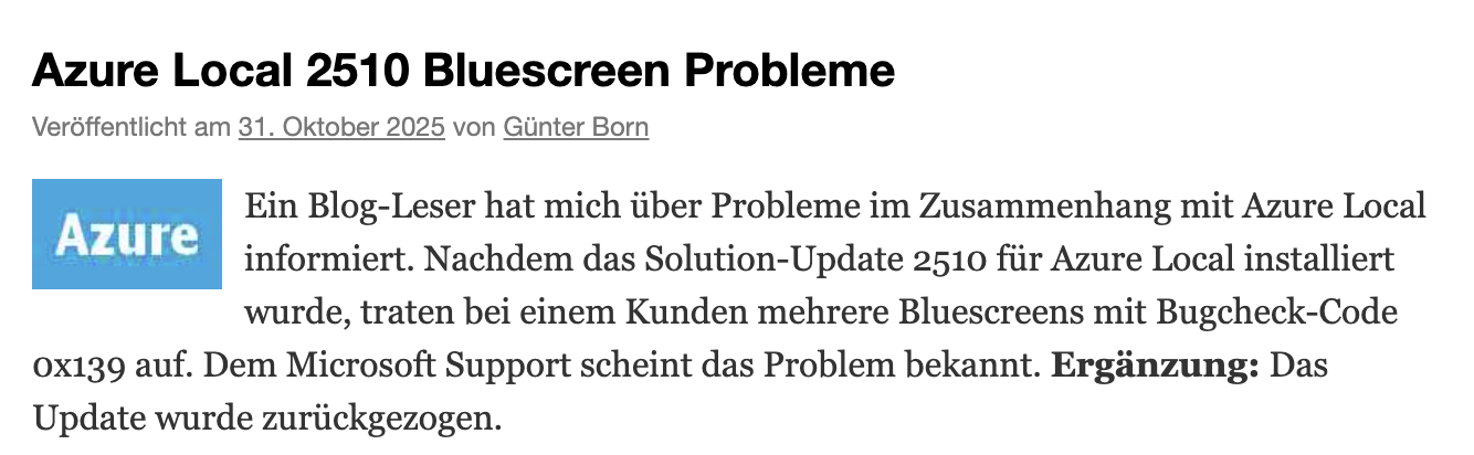 【環球網科技綜合報道】11月1日消息,科技媒體BornCity披露,微軟近期為混合雲解決方案Azure Local推送的解決方案更新2510(版本號11.2510.1002.87)引發嚴重系統故障。該更新導致部分生產環境中的集羣系統頻繁出現錯誤代碼為0x139的藍屏死機,平均每20小時崩潰一次,對醫療、金融等關鍵行業造成衝擊。