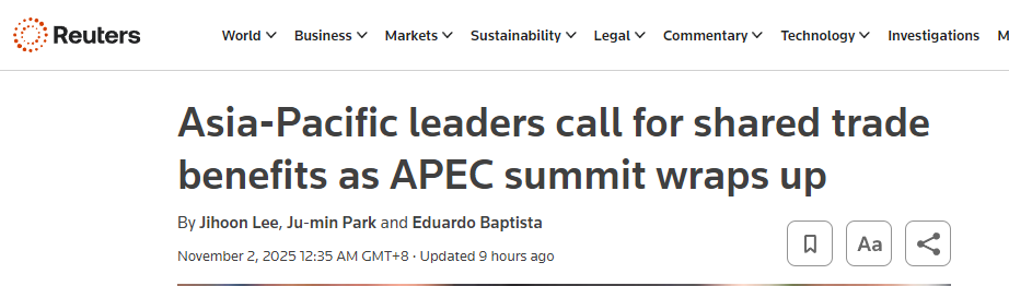 全球媒體聚焦 | 外媒稱 2025APEC峯會凸顯地區經濟體對自由貿易的承諾