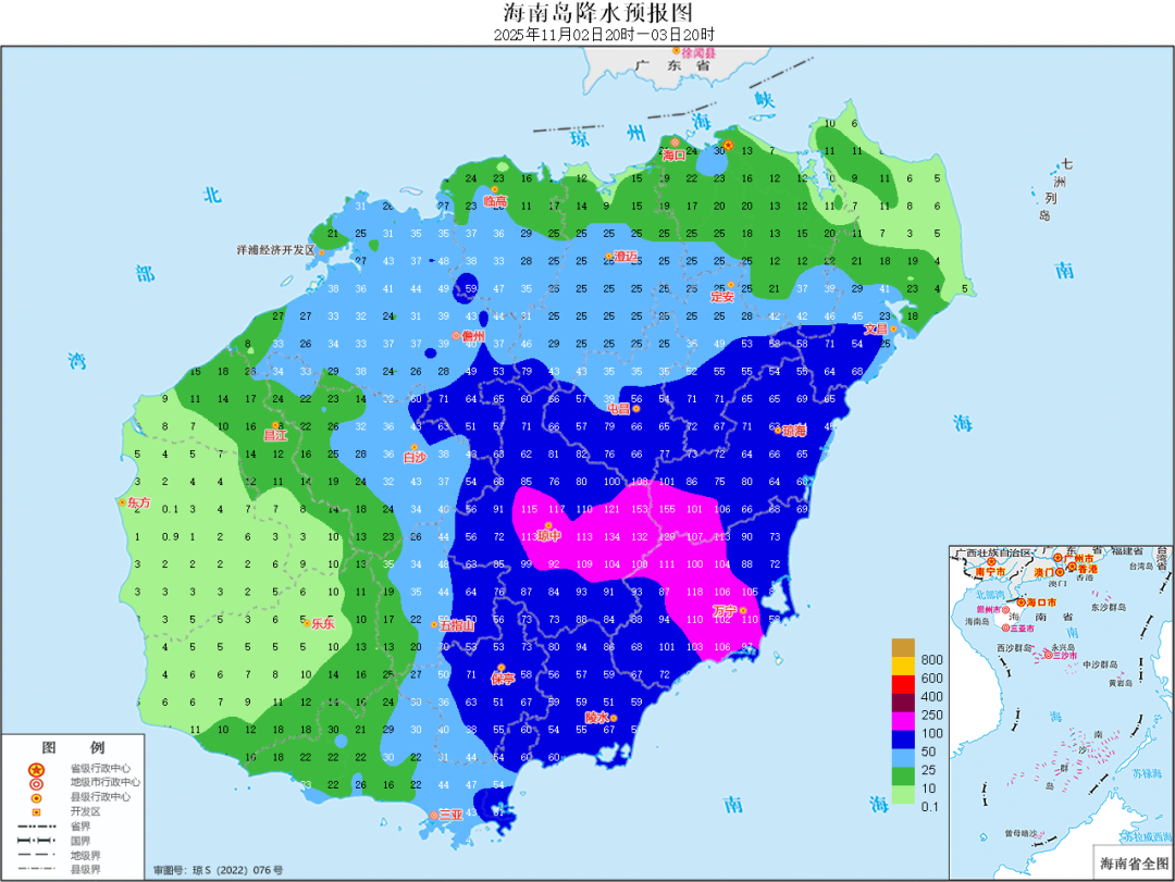 省氣象局已於2025年11月2日16時30分發布暴雨四級預警,根據《海南省防汛防風防旱應急預案》有關規定,經會商研判,省防災減災救災委員會決定於2025年11月2日17時啓動防汛防風Ⅳ級應急響應。請萬寧、瓊中、瓊海立即啓動不低於省級響應級別的應急響應,其他市縣要加強會商研判,依據氣象部門預報預警情況,及時啓動應急響應,並督促相關責任部門做好防禦工作。