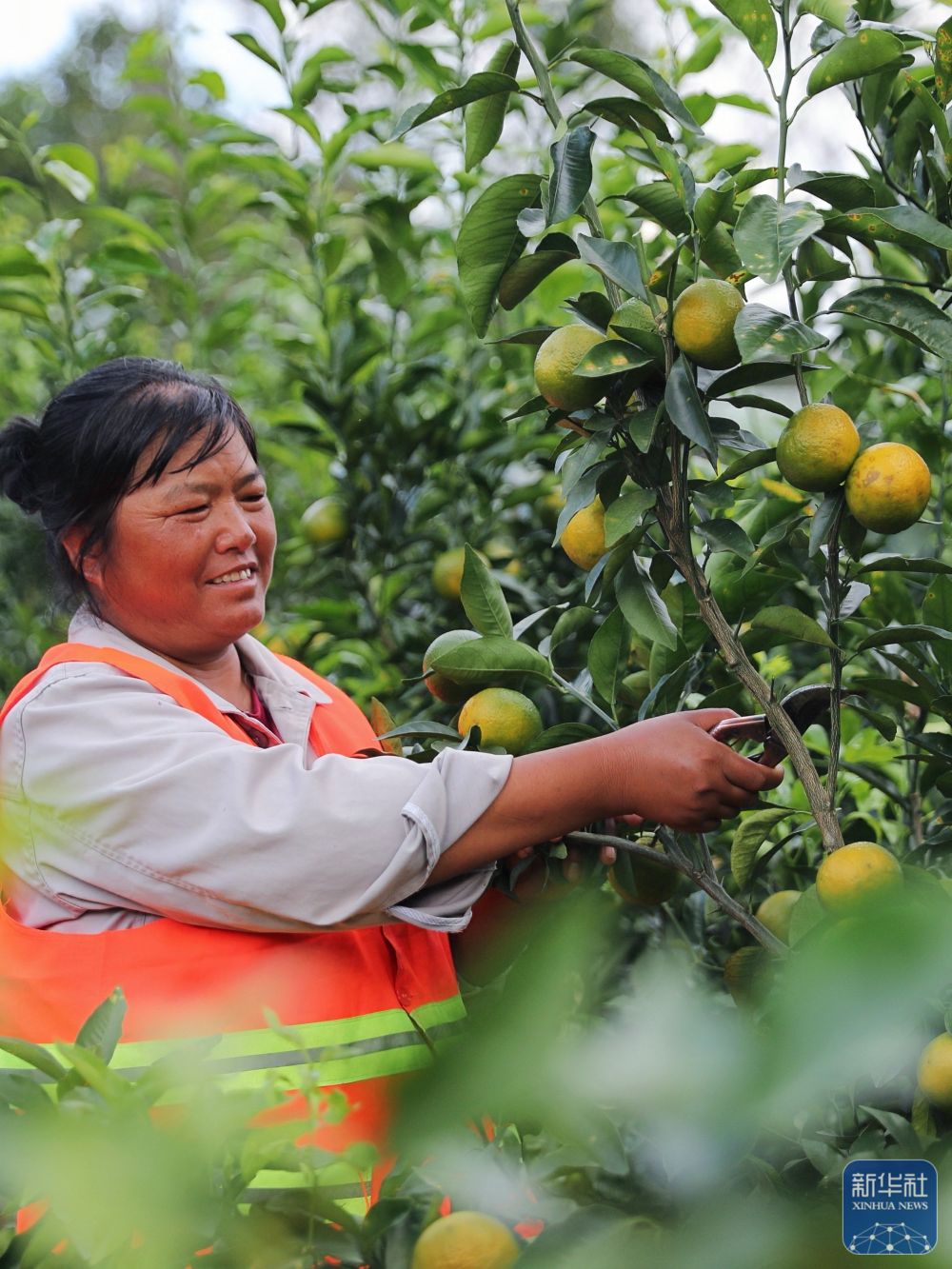 ↑ 10月30日,小灣東鎮居民在合作社的果園裏勞作。