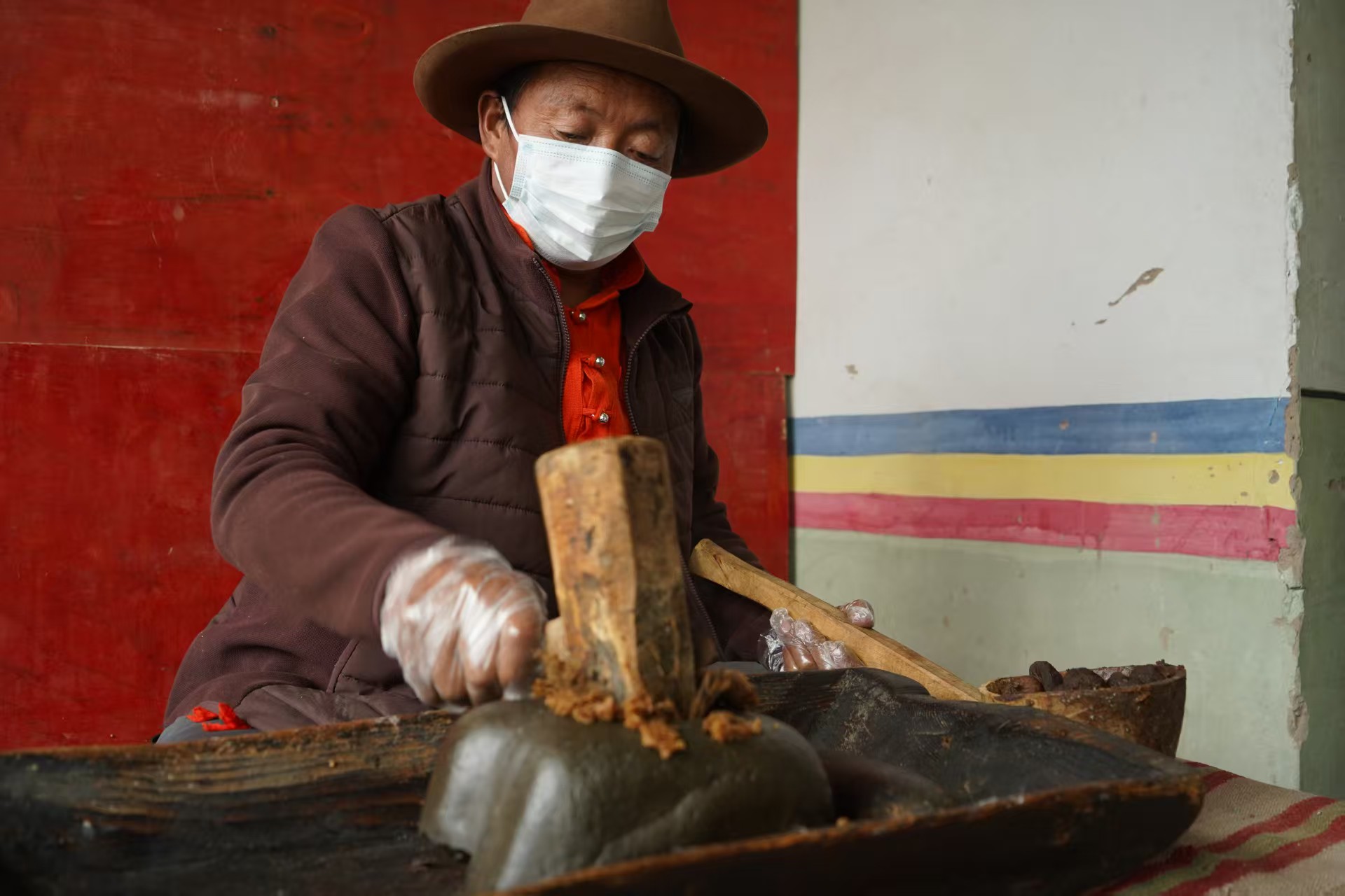 “以前地裏的芫根,吃不完的只好喂牲口。”為了實現芫根這種當地土特產價值的最大化,嘎松扎西在世代傳承的古法工藝基礎上不斷改進創新。嘎松扎西介紹,通過“曬乾、清洗、煮熟、切塊、打碎、復曬”六道工序,一種作物便衍生出多種食用方式,鄉土味道有了更多元的呈現,土特產也能跟隨時代的發展引領新“食”尚。