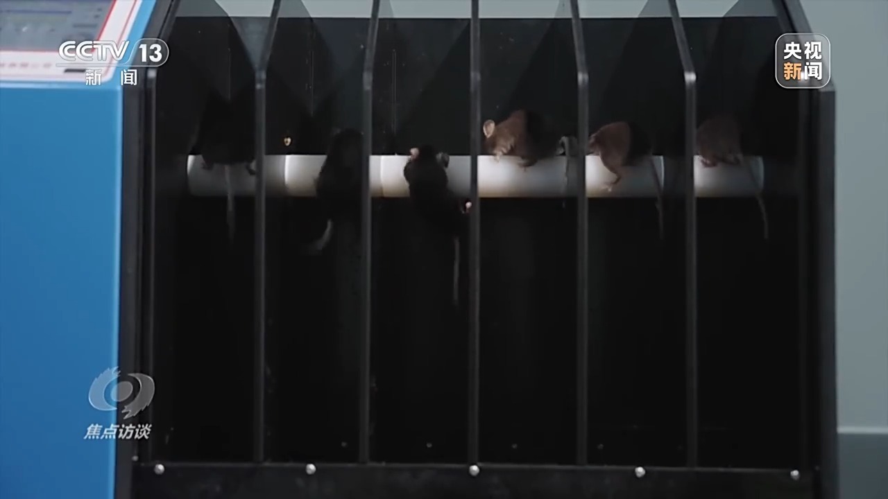第三關是平衡木測試。一隻小鼠就順利地通過了平衡木進入了下一關。據介紹,除體能方面的篩選外,科研人員還為小鼠設計了“闖迷宮”等測試環節,用以考驗小鼠的記憶力和智商,確保其在空間環境中能夠準確找到食物。過五關斬六將,小鼠上天可不是為了玩,它們與人類的基因相似度約為85%,太空環境下生命體生理變化、行為適應乃至生殖發育等都有很大的參考價值,它們的飛天重任是要為人類健康做貢獻。