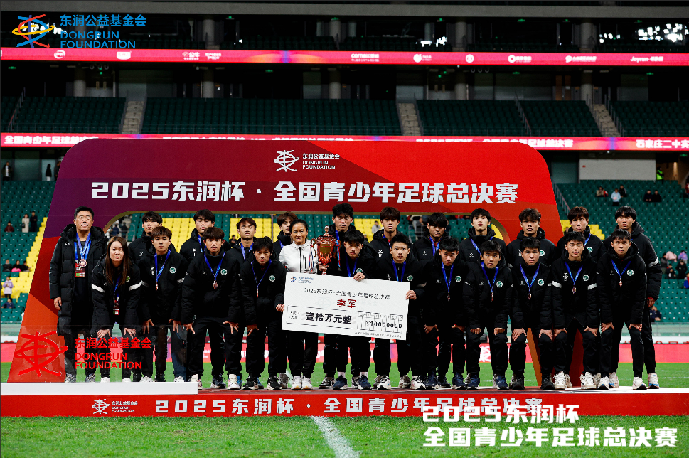 東潤公益基金會理事長孔東梅女士在現場表示:“首先,我向冠軍隊伍石家莊二中實驗學校表示最熱烈的祝賀,也向所有參賽的青少年球員們致以敬意。冠軍的獎盃只有一個,但體育精神屬於每一位在賽場上奔跑、拼搏的少年。我們看到的不僅是精湛的球技,更是團隊協作、永不言棄的寶貴品格。東潤公益基金會創辦‘東潤杯’的初衷,就是為熱愛足球的青少年搭建一個實現夢想的舞台。未來,我們將助力更多足球小將從這裏啓航,走向更廣闊的天地。”