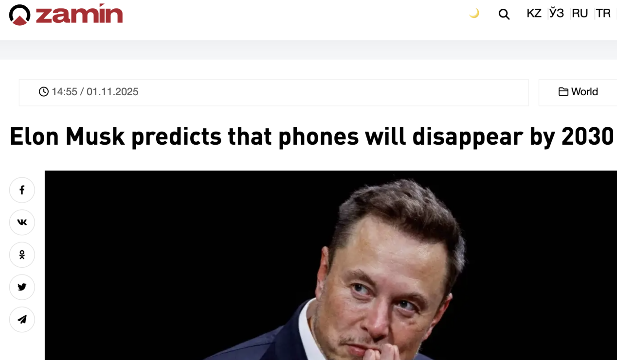外媒:馬斯克預測2030年手機將會消失