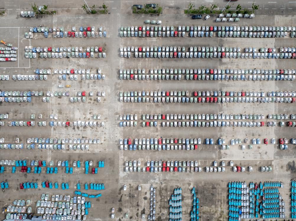 10月16日,江蘇省徐州市豐縣電動車生產企業內準備發貨的電動三輪車。新華社記者 毛俊 攝