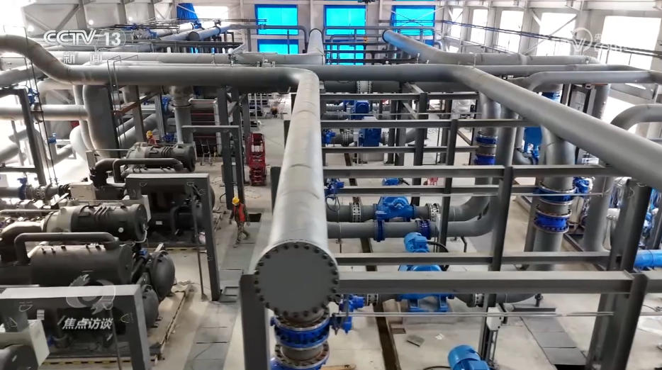 地熱能源站是整個清潔熱源項目的樞紐。地熱水從地下1500米抽上來,要先在地熱能源站提取熱量,再用這些熱量加熱自來水,然後把加熱好的水通過管道送到居民家實現供暖。往百姓家送水的出水口温度高低,直接決定了居民家裏暖不暖。