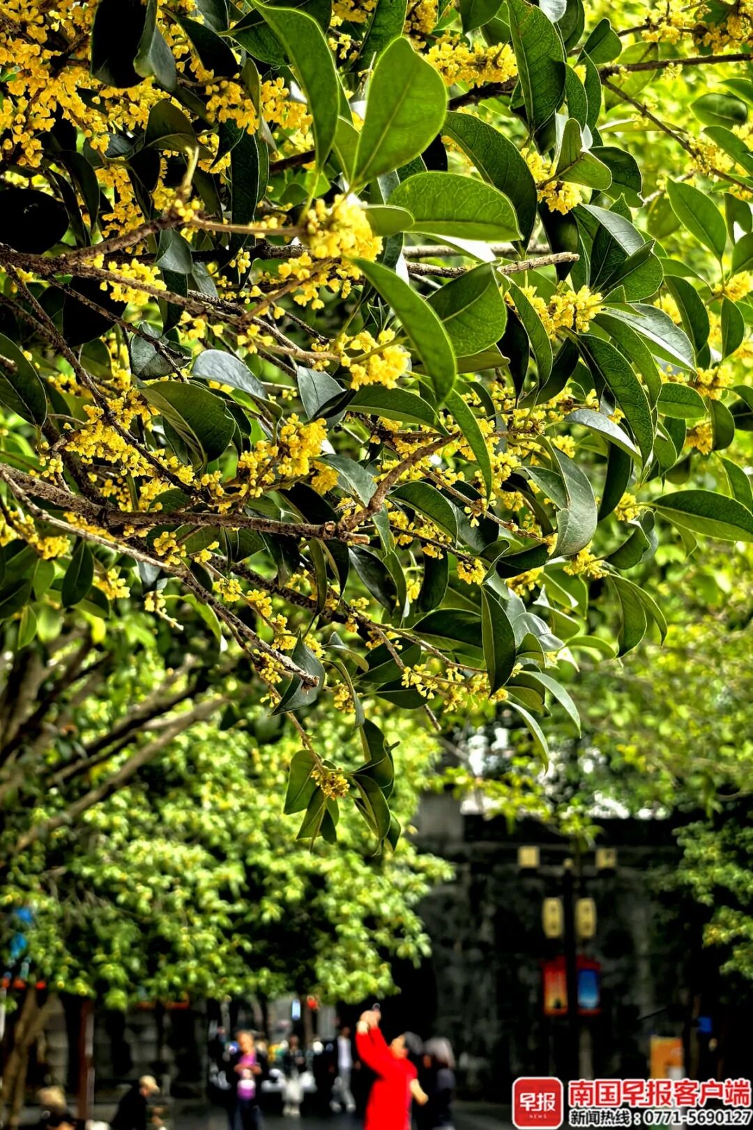 靖江王城歷史文化街區的桂花吸引市民遊客觀賞拍照。李騰釗攝