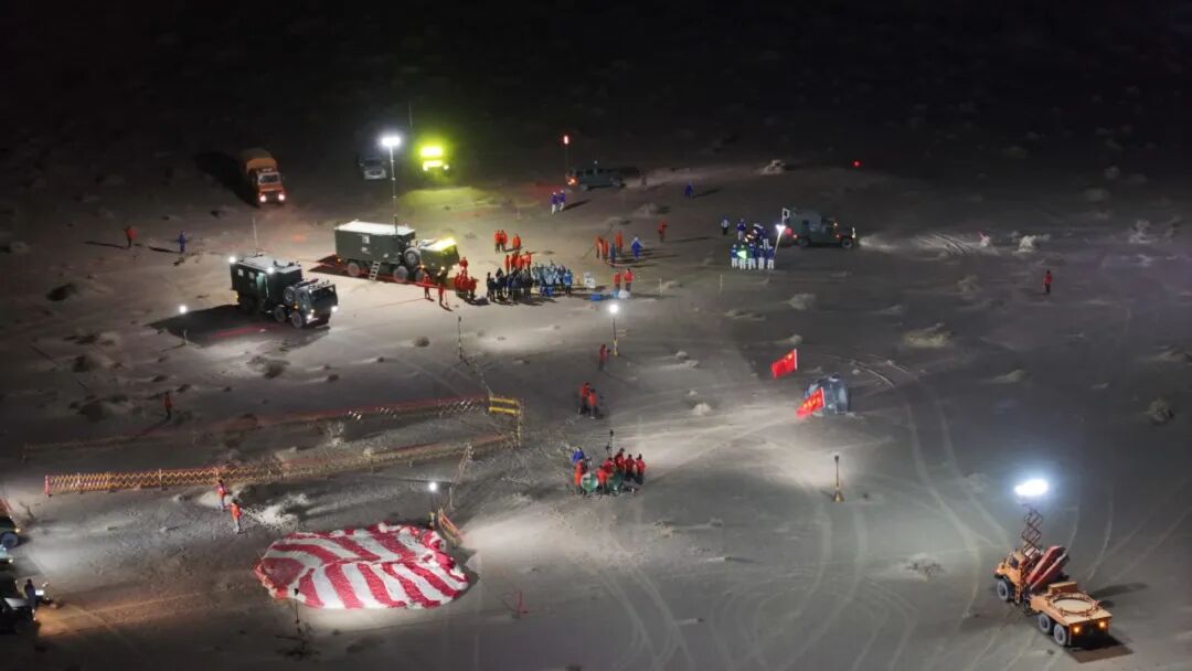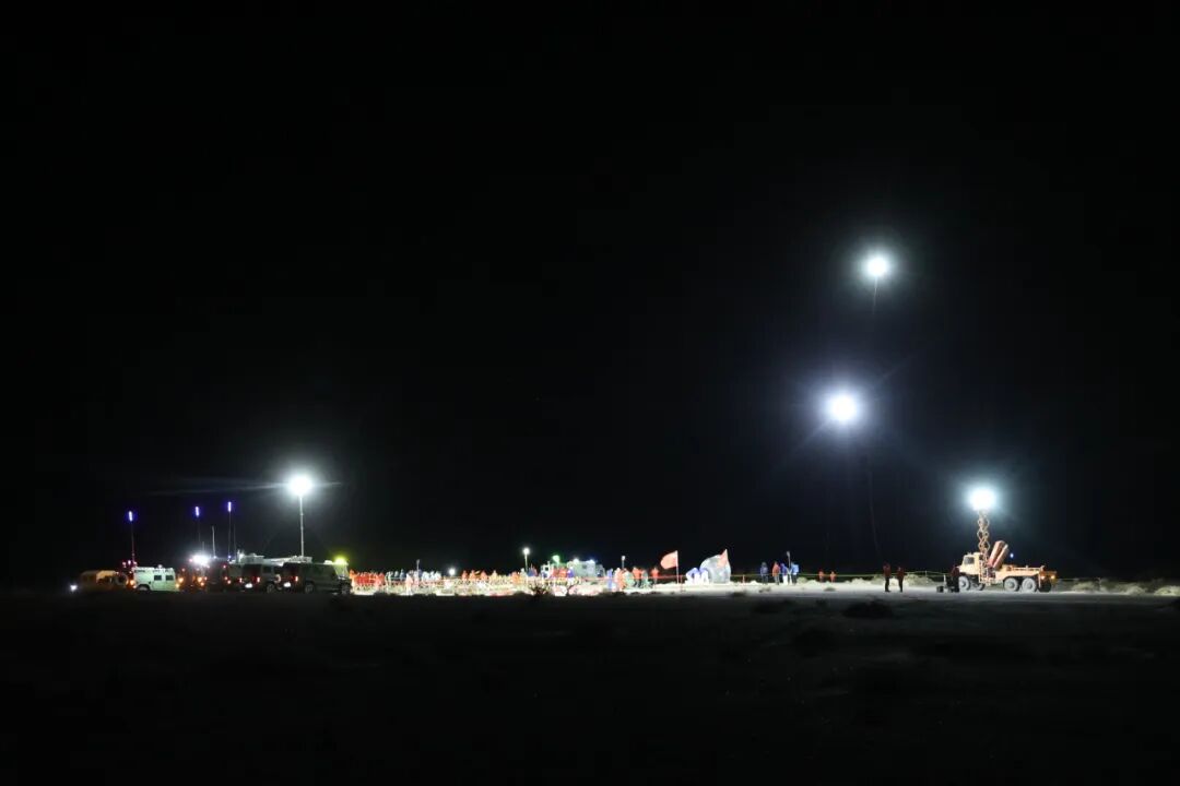 同時,酒泉衞星發射中心為了解決着陸現場照明燈和車載光線照射角度平直問題,升級了無人機夜間照明系統,組建多機協同照明,為現場搜救隊員和背光人員提供大範圍照明,並通過優化照明角度與覆蓋範圍,避免燈光反射造成的視覺干擾。