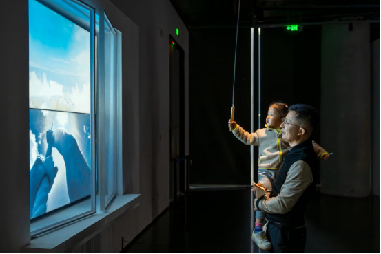 在成都市美術館,未來之境:科技+藝術 | 第五屆電子科技大學&四川美術學院教學科研共創作品聯展 |“遙感——技術想象與日常情境”正在展覽。觀眾與遍佈展廳內的數字屏與光電裝置的“未來藝術”進行互動,試圖理解這些面向未來的創作方式。