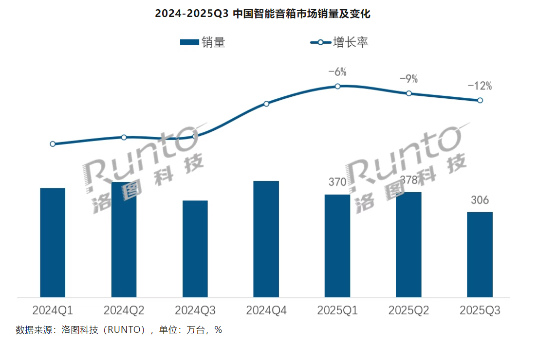 機構:2025年第三季度中國智能音箱全渠道市場銷量為305.7萬台