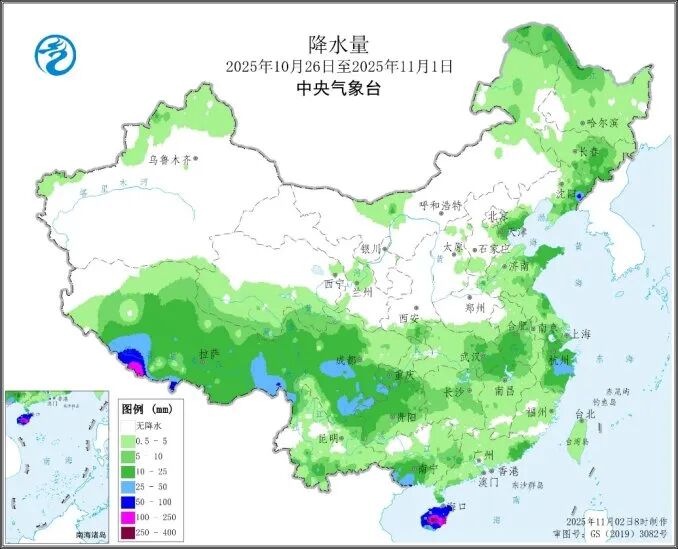 西南地區大部、江南中西部及華南西部等地多陰雨天氣,累計降水量有25毫米至60毫米,其中四川大部、重慶南部、雲南、貴州及湖南西部等地降水日數有4至7天,降水較強時段為11月3日至4日和9日前後,四川南部、雲南西部和北部等地土壤過濕將持續或加重,油菜播栽及培育壯苗、冬小麥播種略受影響,也不利於秋收作物晾曬儲存及晚稻成熟收曬。