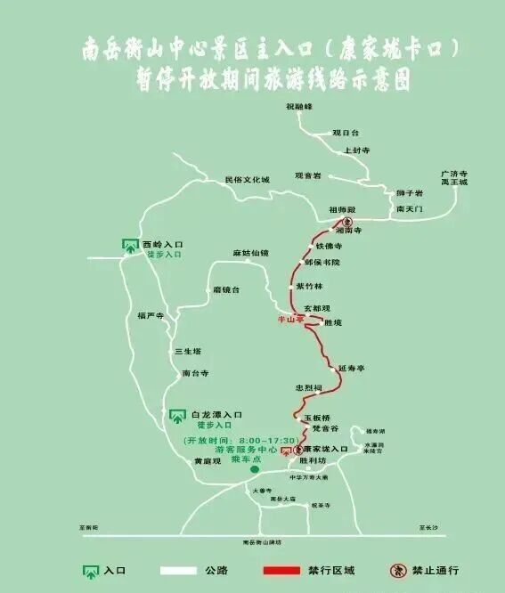 11月3日,衡陽南嶽中心景區公路提質改造工程啓動,施工期間,康家壠卡口、南嶽忠烈祠暫停開放。