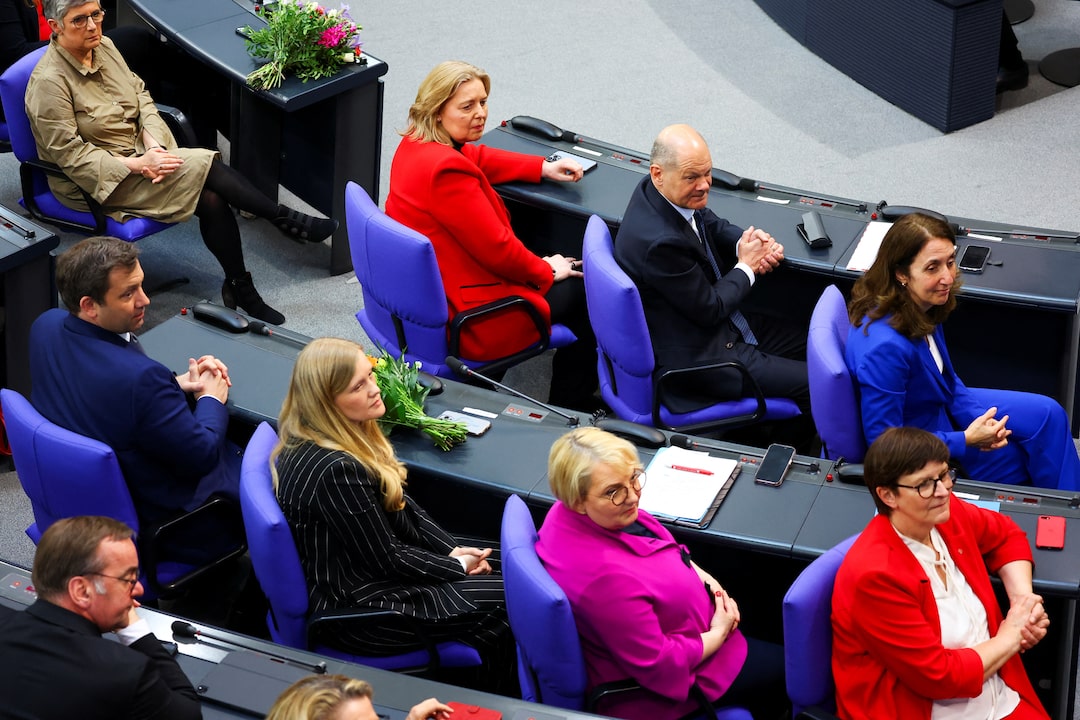 第1項,共8項 德國聯邦議院在德國國歌演奏期間的全景圖,德國柏林,2025年3月25日,德國下議院聯邦議院的首次會議。路透社/莉西·尼斯納