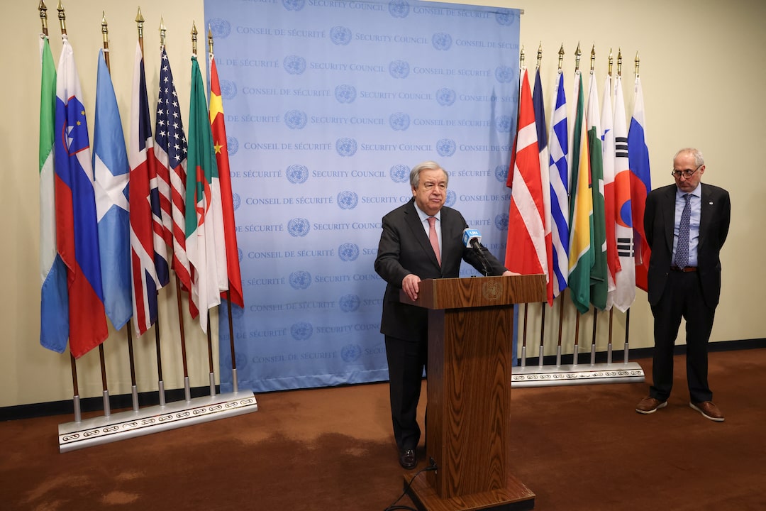 聯合國秘書長安東尼奧·古特雷斯在2025年3月28日於美國紐約市就南蘇丹的安全形勢發表講話。路透社/凱特琳·奧克斯