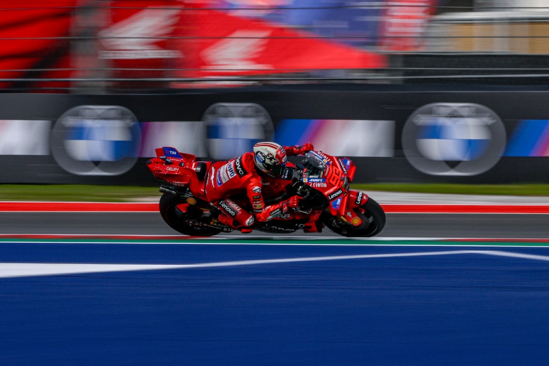 2025年3月29日,美國德克薩斯州奧斯汀;西班牙車手馬克·馬奎斯(93號)代表杜卡迪聯想車隊在美洲賽道舉行的2025年MotoGP美洲大獎賽排位賽中騎行。圖片來源:Jerome Miron-Imagn Images