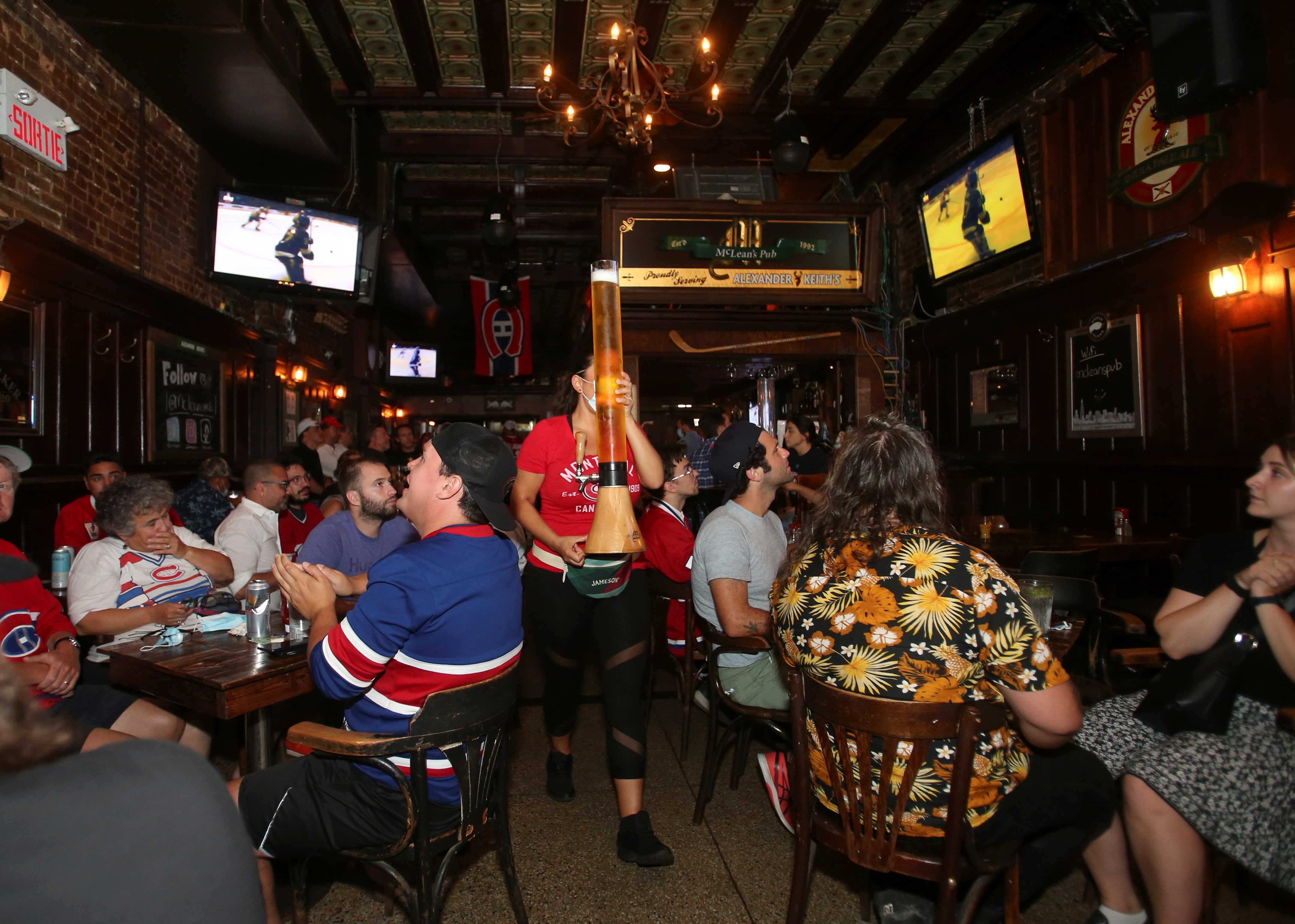 2021年6月30日,加拿大魁北克省蒙特利爾,蒙特利爾加拿大人隊冰球迷聚集在Macleans Pub觀看斯坦利杯決賽第二場客場對陣坦帕灣閃電隊的比賽。路透社/Christinne Muschi/檔案照片4月16日(路透社)——在這個將冰球視為神聖運動的國家,加拿大政界採取戰術性調整,以避免與蒙特利爾加拿大人隊關鍵比賽時間衝突。