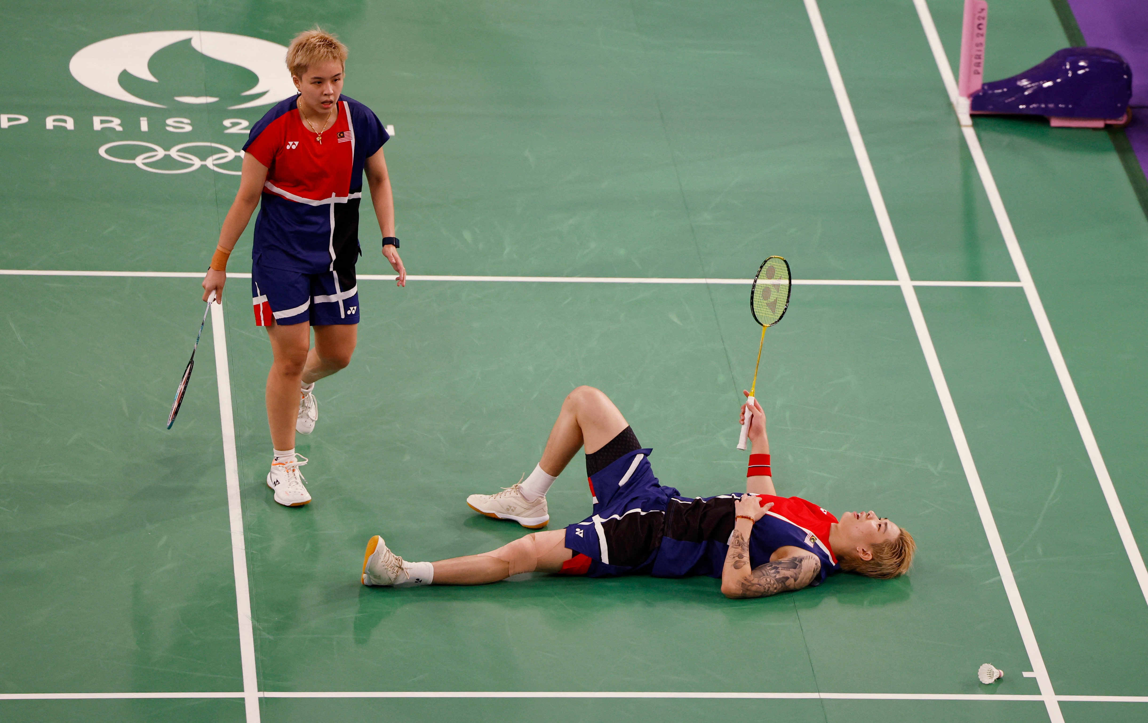 2024年巴黎奧運會羽毛球混雙小組賽階段 - 法國巴黎拉夏貝爾門體育館,2024年7月29日。馬來西亞選手陳堂傑與杜依蔚在對陣中國組合馮彥哲/黃東萍的D組比賽中。路透社/Hamad I Mohammed 吉隆坡4月17日(路透社)——世界排名第四的馬來西亞羽毛球混雙組合陳堂傑與杜依蔚在宣佈因"不可調和的分歧"解散數週後戲劇性複合。
