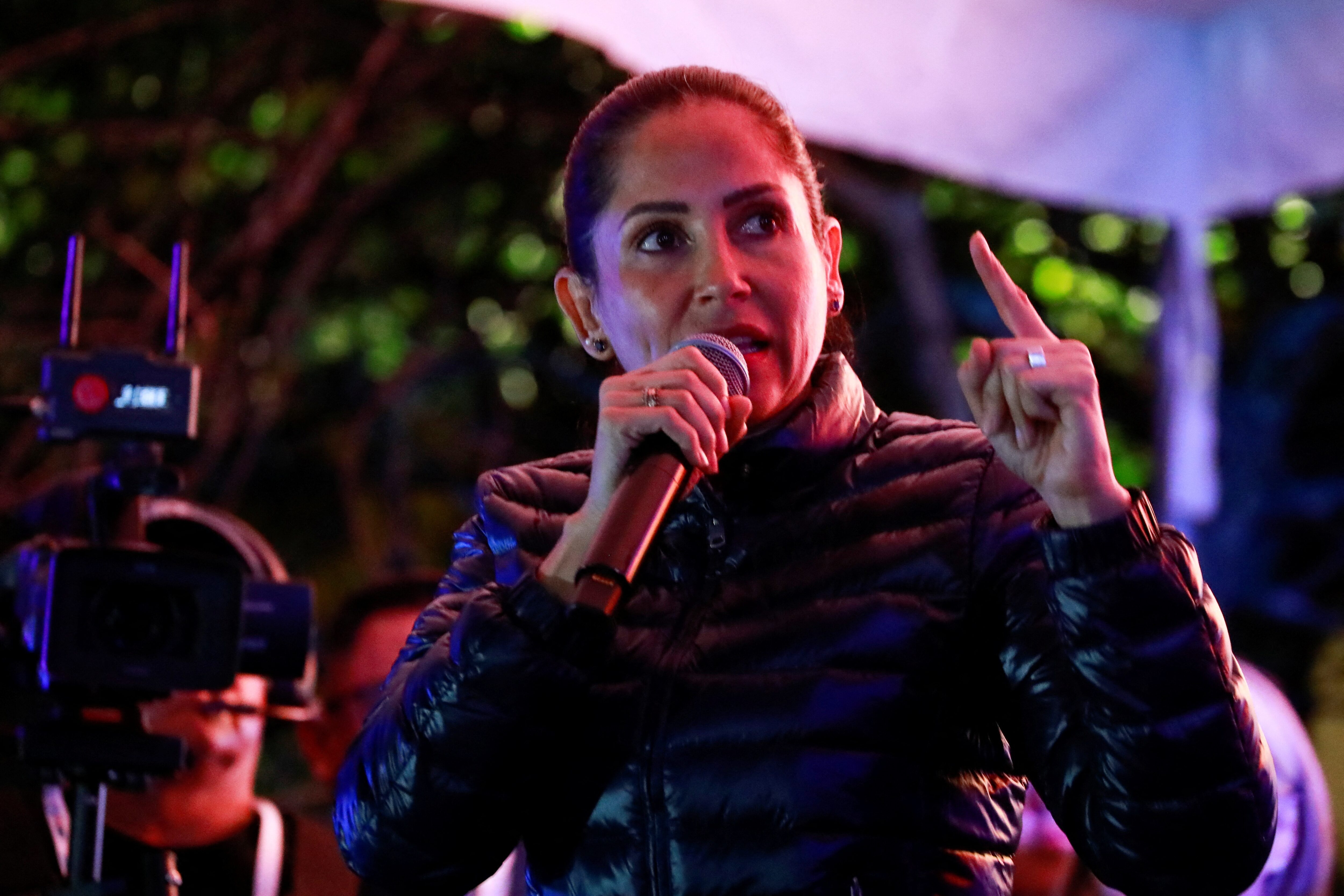 資料圖片-厄瓜多爾前總統候選人路易莎·岡薩雷斯在基多向支持者發表講話