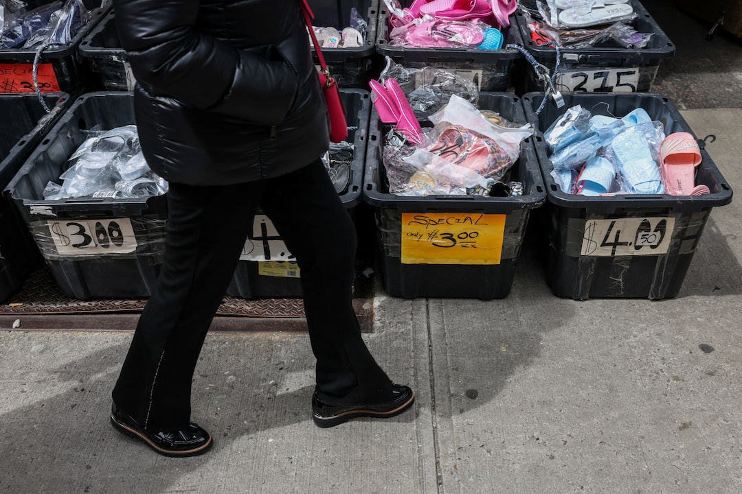 2025年4月14日,人們走過美國紐約市唐人街。路透社/Kylie Cooper路透社4月18日電 - 上週,紐約市唐人街Mulberry街Sun Vin雜貨店的一包米餅售價為4.99美元。