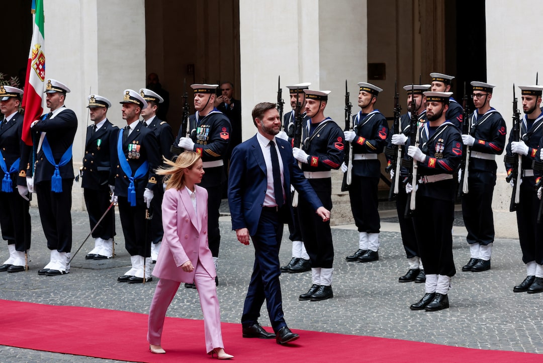 5項中的第1項 意大利總理喬治婭·梅洛尼與美國副總統JD·萬斯於2025年4月18日在意大利羅馬基吉宮會晤。路透社/雷莫·卡西利 當日焦點圖片