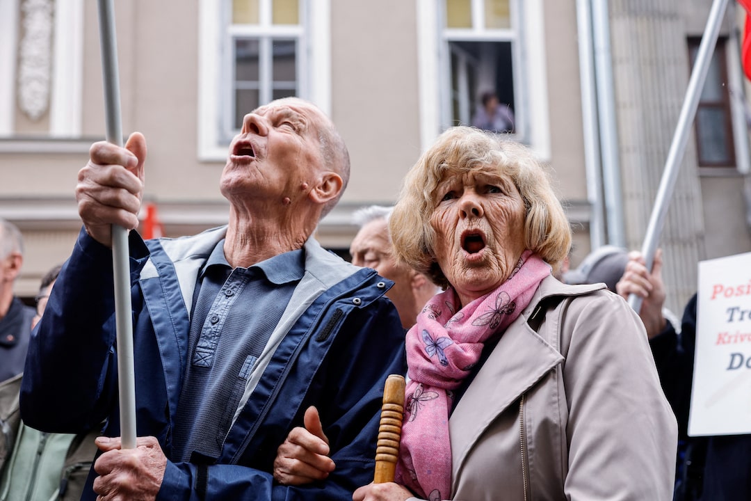 圖集1/5:2025年4月18日,斯洛文尼亞前總理亞內茲·揚沙在採列市被宣判腐敗指控不成立後發表講話。路透社/Borut Zivulovic