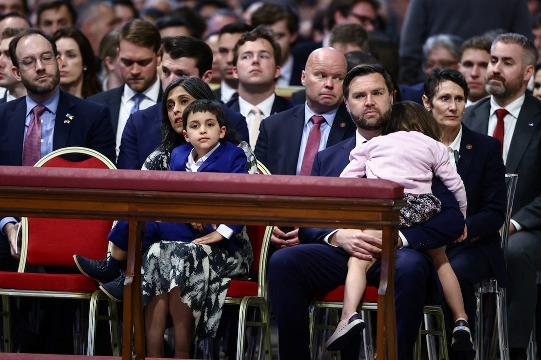 2025年4月18日,美國副總統J·D·萬斯在梵蒂岡聖彼得大教堂參加主受難日儀式時懷抱女兒抬頭凝望。路透社/Yara Nardi 梵蒂岡城4月18日電(路透社)——美國副總統JD·萬斯週五參加了梵蒂岡的宗教儀式,但正在康復中的教皇方濟各未出席。這位天主教徒曾因特朗普政府的移民政策與教皇產生分歧。萬斯攜家人在復活節週末訪問意大利期間,參加了聖彼得大教堂紀念耶穌受難日的儀式。路透社關税觀察日報為您提供全球貿易與關税最新動態。點擊此處註冊