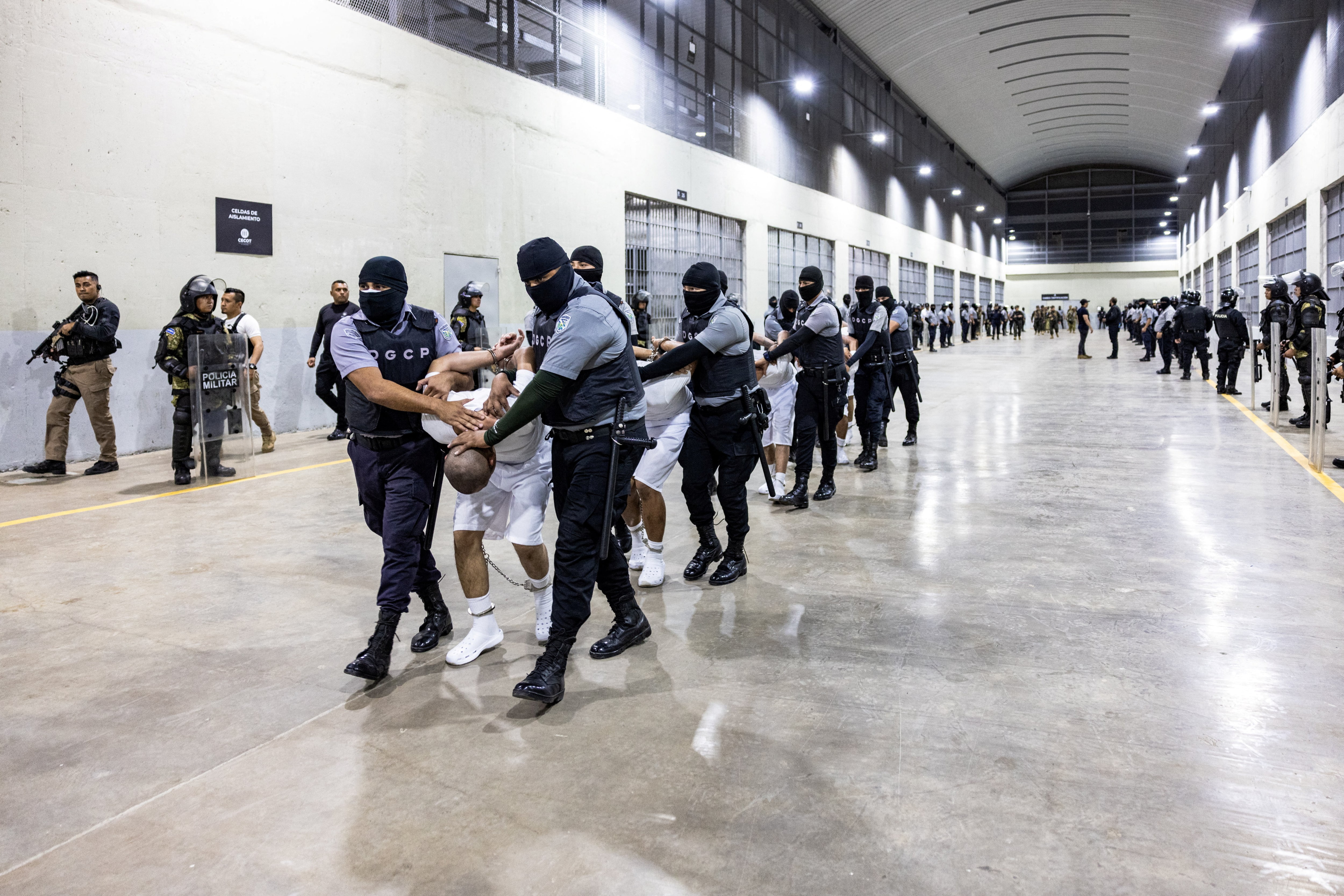 2025年4月12日,薩爾瓦多特科盧卡恐怖主義關押中心(CECOT)監獄,獄警押解被美國政府驅逐出境的委內瑞拉黑幫"阿拉瓜列車"及MS-13團伙成員。總統府新聞秘書處通過路透社發佈的資料圖片路透社4月18日電——美國法官裁定,特朗普政府不得在未給予移民證明其可能遭受迫害、酷刑或殺害機會的情況下,將成百上千名移民快速遣送至非原籍國。