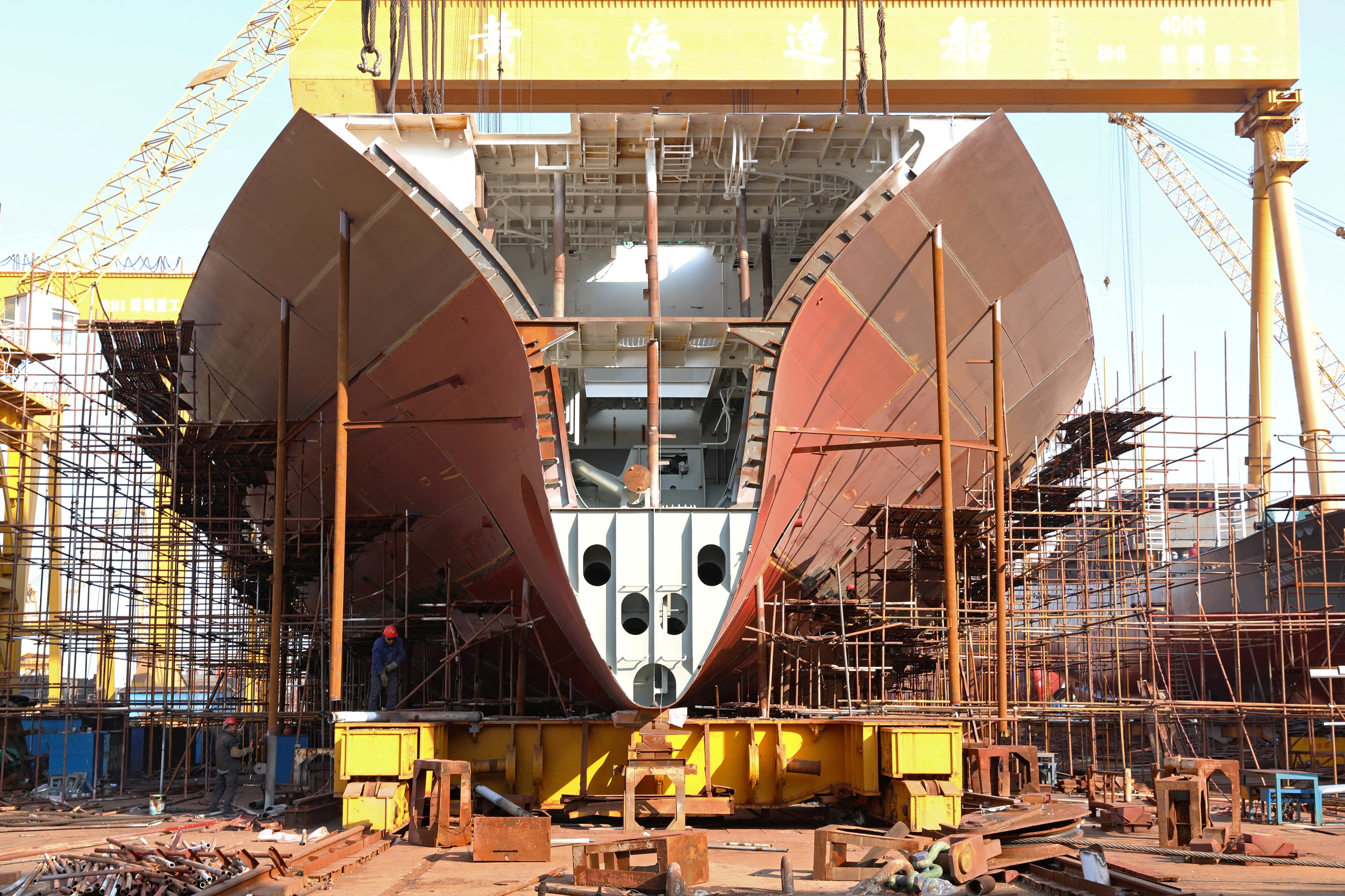 2018年11月6日,中國山東省威海市黃海造船有限公司造船廠內,工人們正在一艘在建船舶旁作業。照片拍攝於2018年11月6日。路透社/Stringer/檔案照片北京,4月19日(路透社)——中國造船企業週六抨擊特朗普政府宣佈的對與中國有關聯的船舶徵收的"短視"美國港口費,這一措施針對的是中國的造船業。特朗普週三簽署了一項旨在重振美國造船業並減少中國對全球航運業控制的命令。他的政府第二天通過保護服務於五大湖、加勒比海和美國領土的國內出口商和船東,淡化了這些措施。