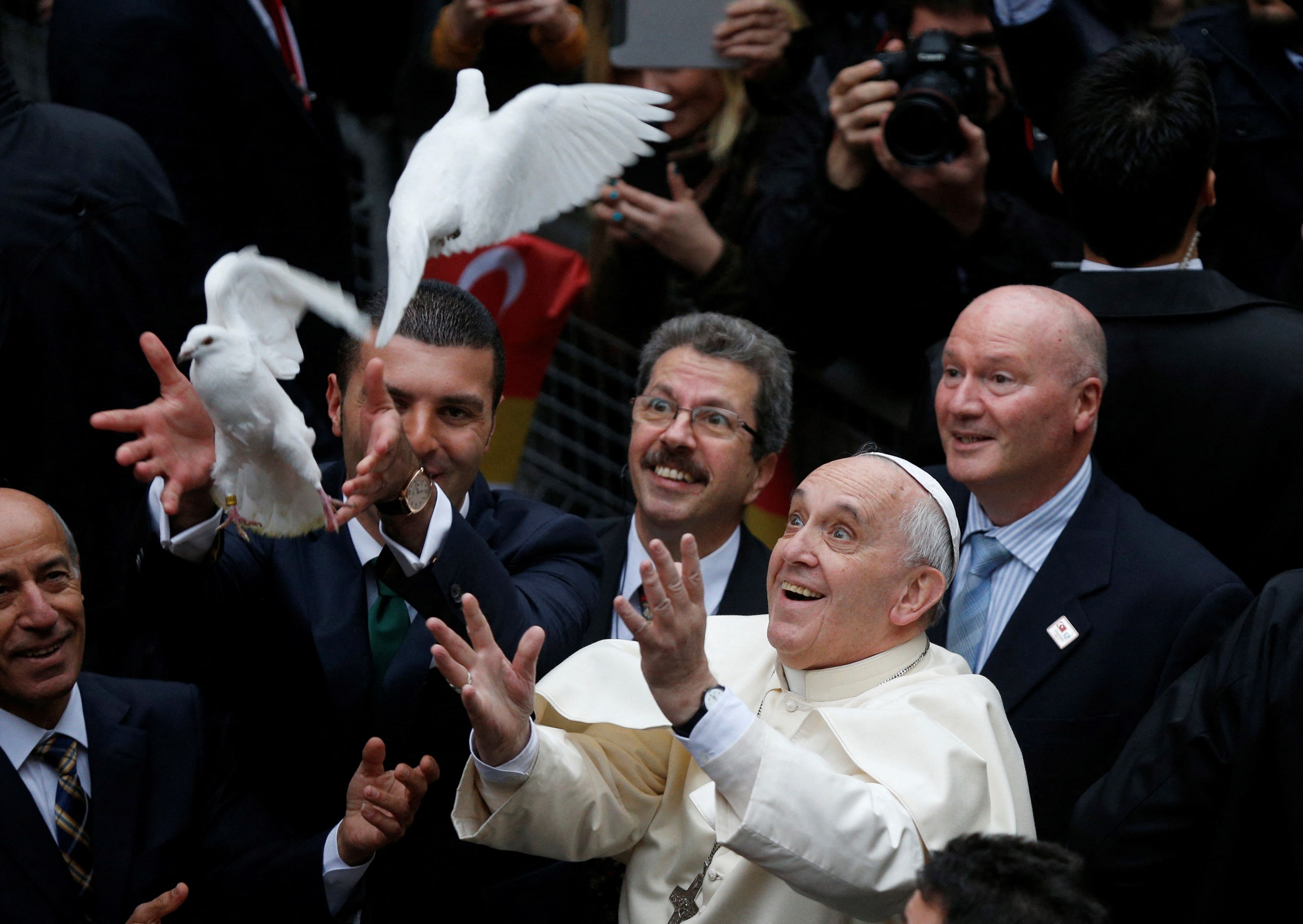 2014年11月29日,教皇方濟各在伊斯坦布爾聖靈天主教堂舉行彌撒前放飛白鴿。路透社/斯托揚·內諾夫/檔案照片梵蒂岡城,4月21日(路透社)——以下是關於教皇方濟各的一些事實,他於88歲去世。- 豪爾赫·馬里奧·貝爾格里奧於1936年12月17日出生在阿根廷布宜諾斯艾利斯,父母是意大利移民。他於1969年被任命為耶穌會神父。1973年至1979年,他擔任耶穌會在阿根廷的最高領導人。1992年成為布宜諾斯艾利斯的輔理主教,1998年升任該市大主教。2001年,教皇約翰·保羅二世任命他為樞機主教。